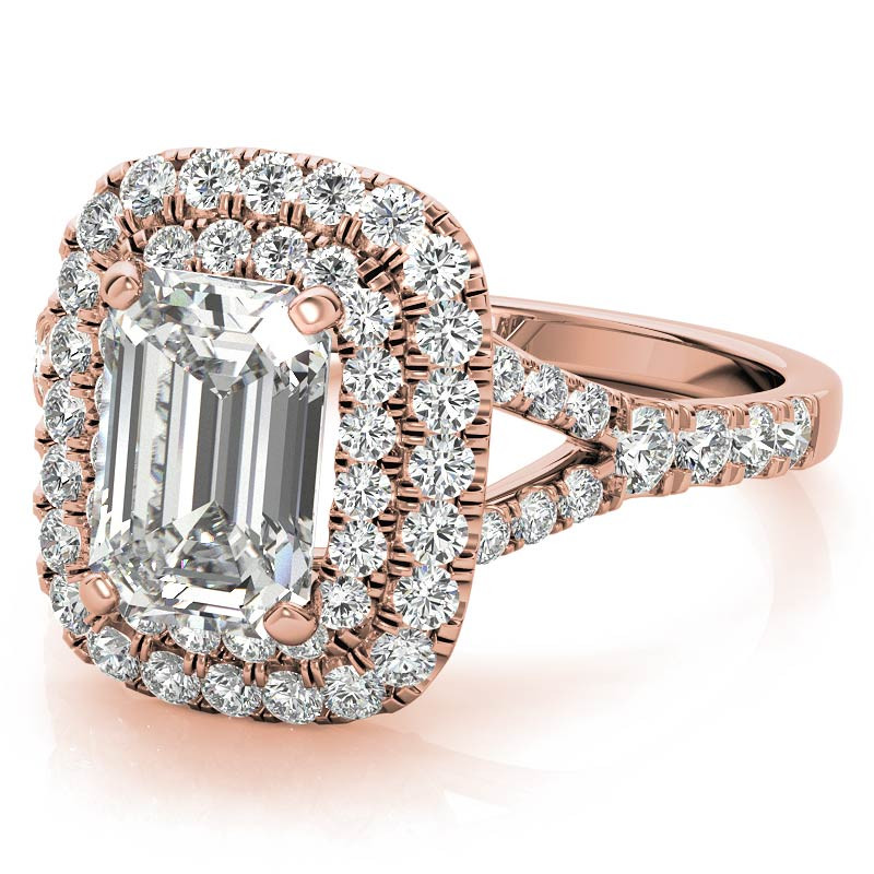 #enr217-em Emerald / Radiant Double Halo Cathedral Lab Grown Diamond Engagement Ring