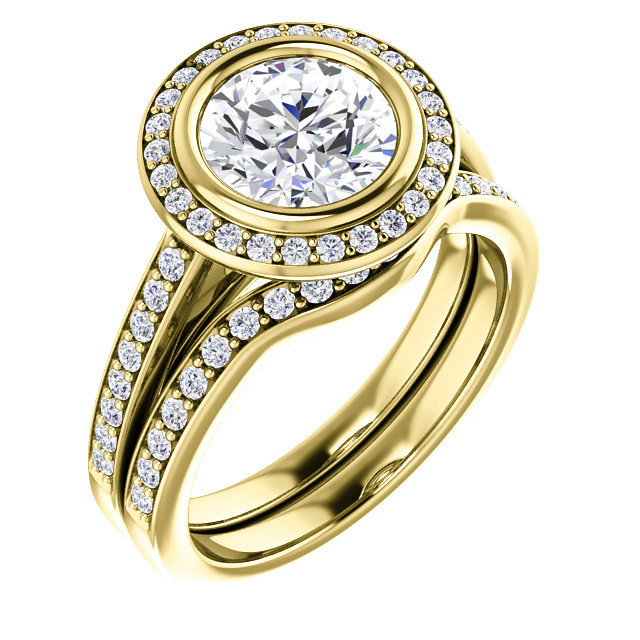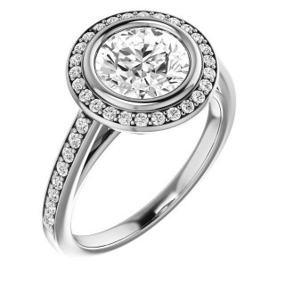 #enr321 Round Brilliant cut Lab Grown Diamond Bezel Halo Engagement Ring