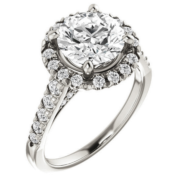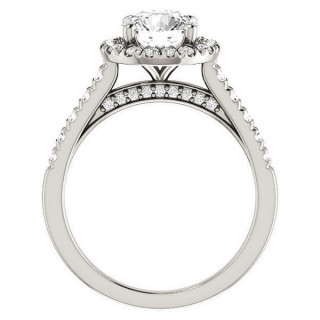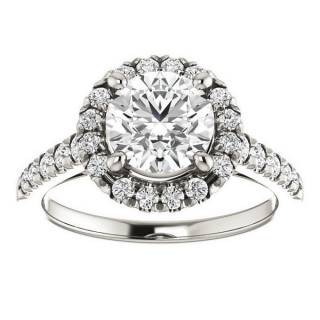 This beautiful engagement ring features a cathedral halo design, a round brilliant cut lab grown diamond center stone and 0.50ct of round brilliant colorless lab grown diamond side stones, set in your choice of 14k gold, 18k gold or platinum.