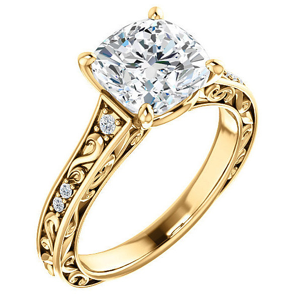 #enr392-cu Cushion cut Lab Grown Diamond Engagement Ring with Floral Accents