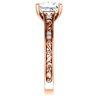 #enr392-pr Princess Lab Grown Diamond Engagement Ring with Floral Design