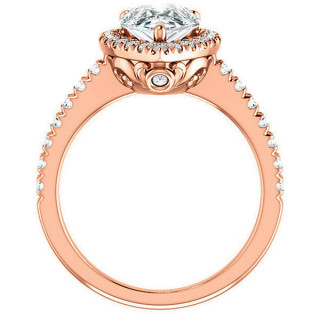 This beautiful engagement ring features a lovely halo design, a Pear cut colorless lab grown diamond center stone, and is set in 14k gold, 18k gold or platinum. The combined carat weight of the round lab grown diamond side stones is 0.60ct.