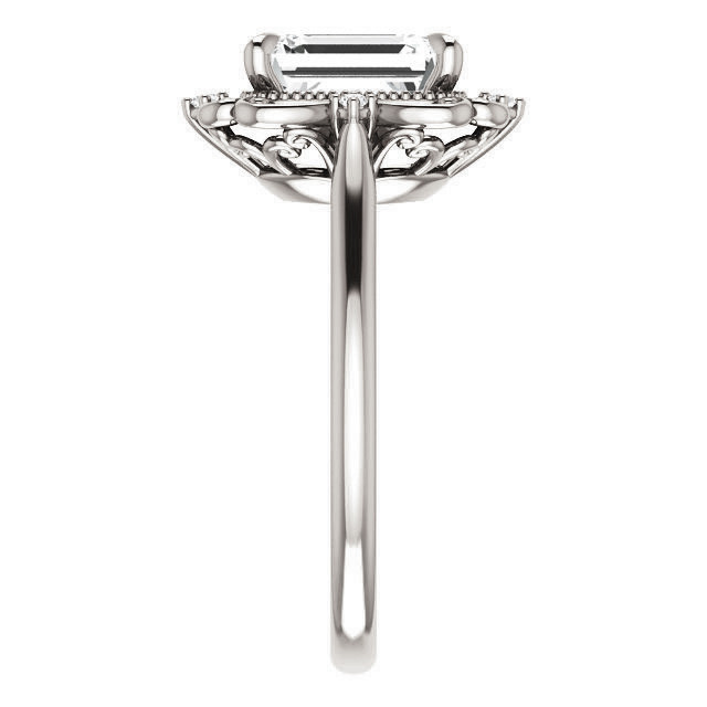 Featuring Side Stones, Halo, Antique, Cathedral and Milgrain from our Engagement Rings collection. Model #enr420-em is available in 16 brilliant center stone options, 2 fine sidestone options, and your choice of 6 eco-friendly precious metals.