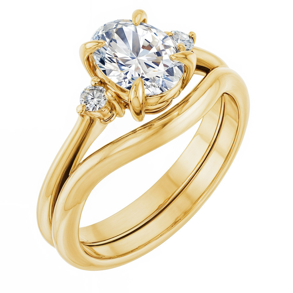 #enr421-ov Oval Lab Grown Diamond Unique Three Stone Engagement Ring