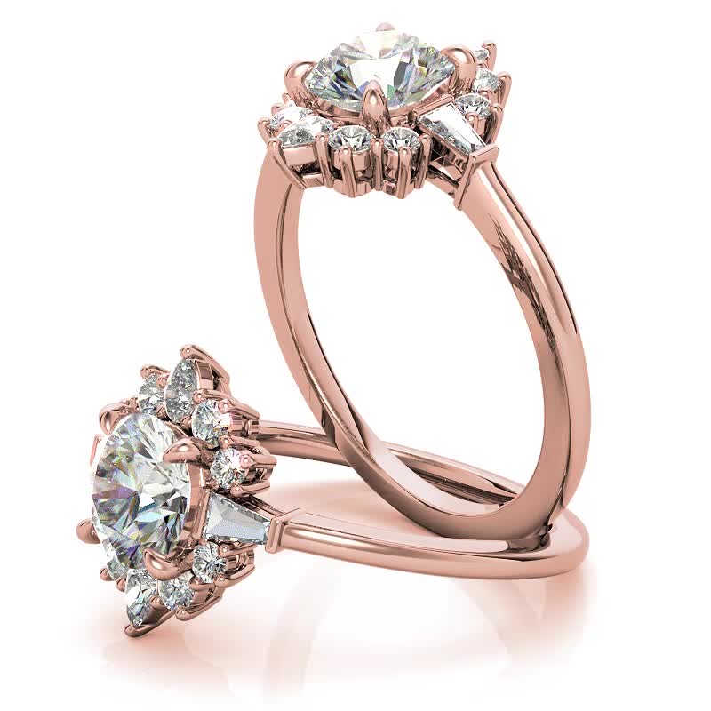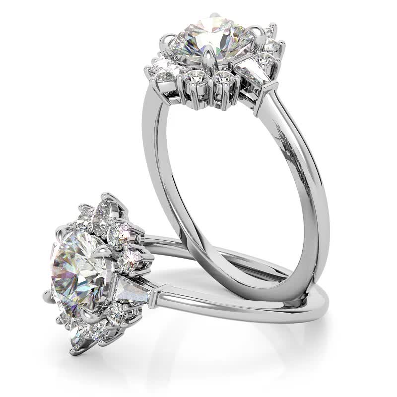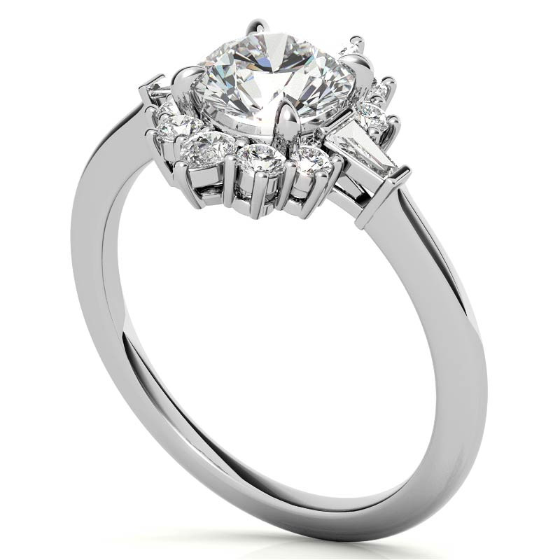 #enr441 Round and Baguette Cluster Halo Lab Grown Diamond Engagement Ring
