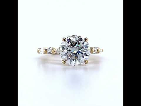 The center of attention is a magnificent marquise cut lab grown diamond center stone, securely held in place by six elegant prongs. Delicate lab grown diamond melee stones grace the band, with a combined weight of 0.07ct.