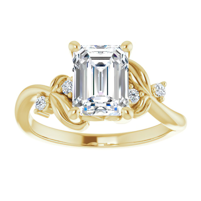#enr449-em Emerald / Radiant Floral Detail Lab Grown Diamond Engagement Ring