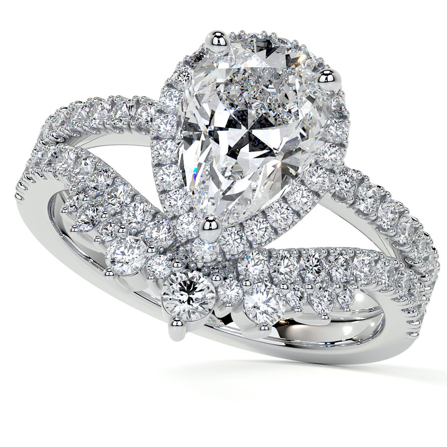 #enr500-pear Pear Basket Halo Lab Grown Diamond Engagement Ring