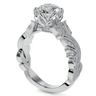 #enr526 Round Floral Cathedral Lab Grown Diamond Engagement Ring with Tulip Prong