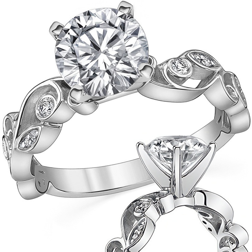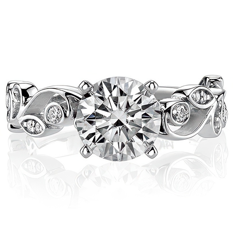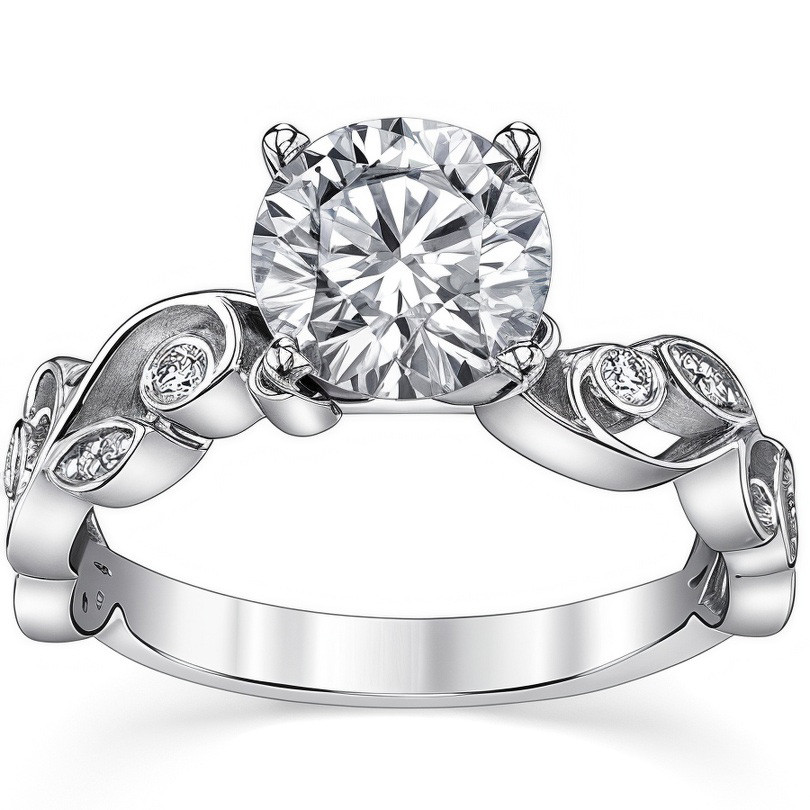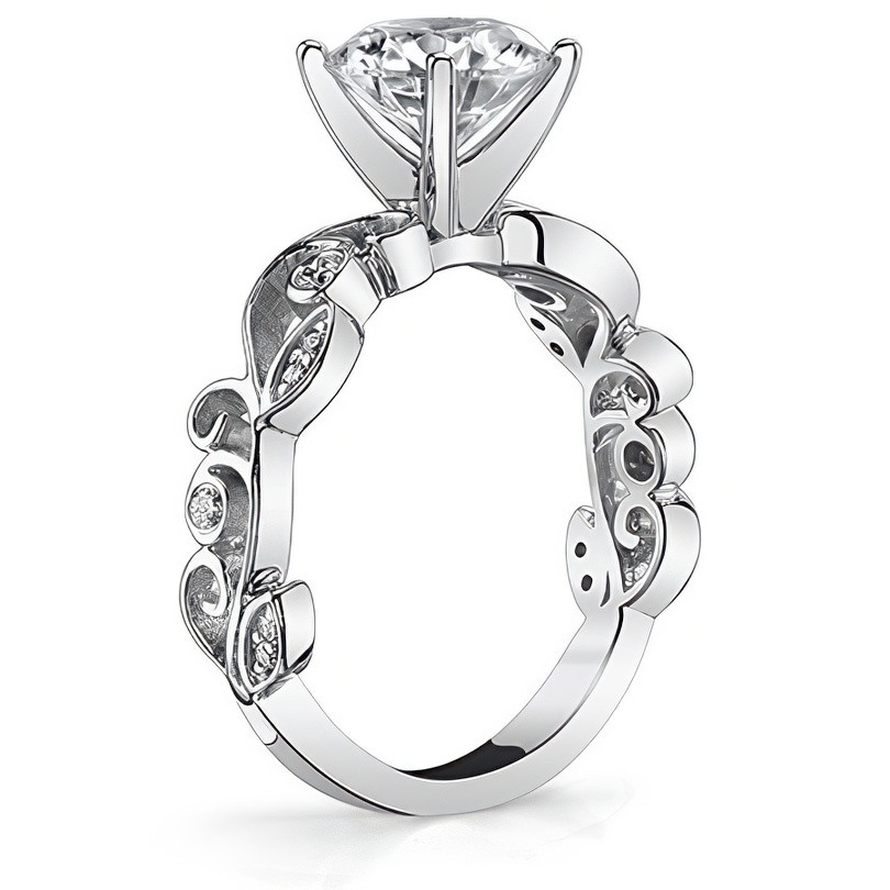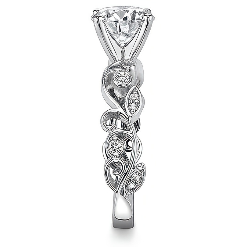 Featuring Side Stones, Nature and Scroll from our Engagement Rings collection. Model #enr602 is available in 61 brilliant center stone options, 2 fine sidestone options, and your choice of 5 eco-friendly precious metals.