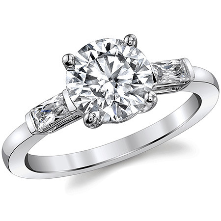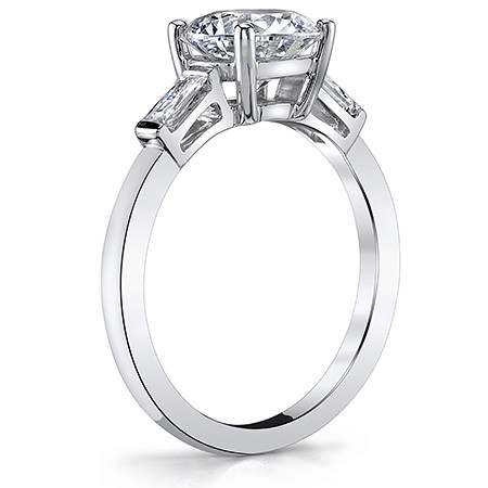 #enr609 Round Brilliant Lab Grown Diamond Engagement Ring with Baguette Side Stones