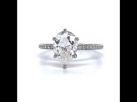As an additional touch of brilliance, our ring features a hidden halo of round brilliant cut lab grown diamond side stones, beautifully accentuating the centerpiece and adding to its overall radiance.