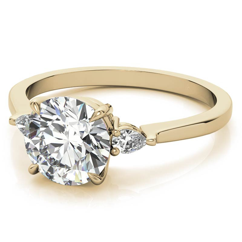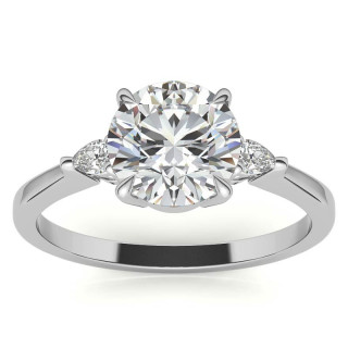 #enr630 Round Brilliant Lab Grown Diamond and Diamond Pear 3-Stone Engagement Ring
