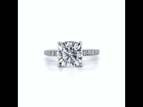 The ring is further enhanced by lab grown diamond side stones with a total carat weight ranging between 0.35ct and 0.38ct.