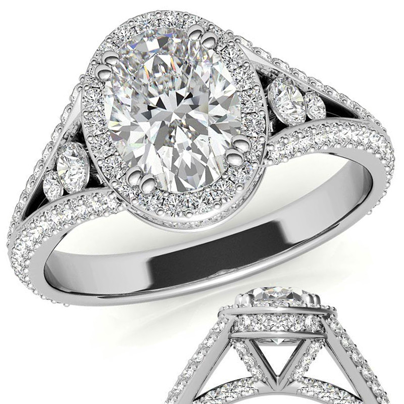 #enr648 Oval Lab Grown Diamond Split Shank Halo Engagement Ring