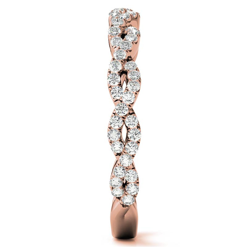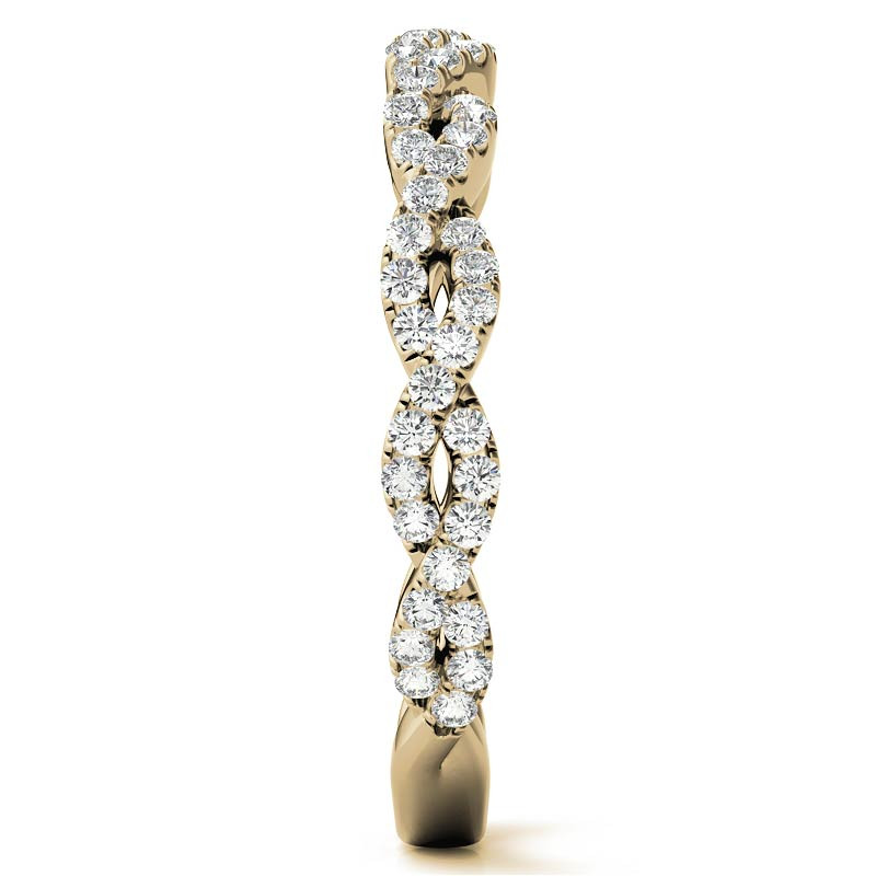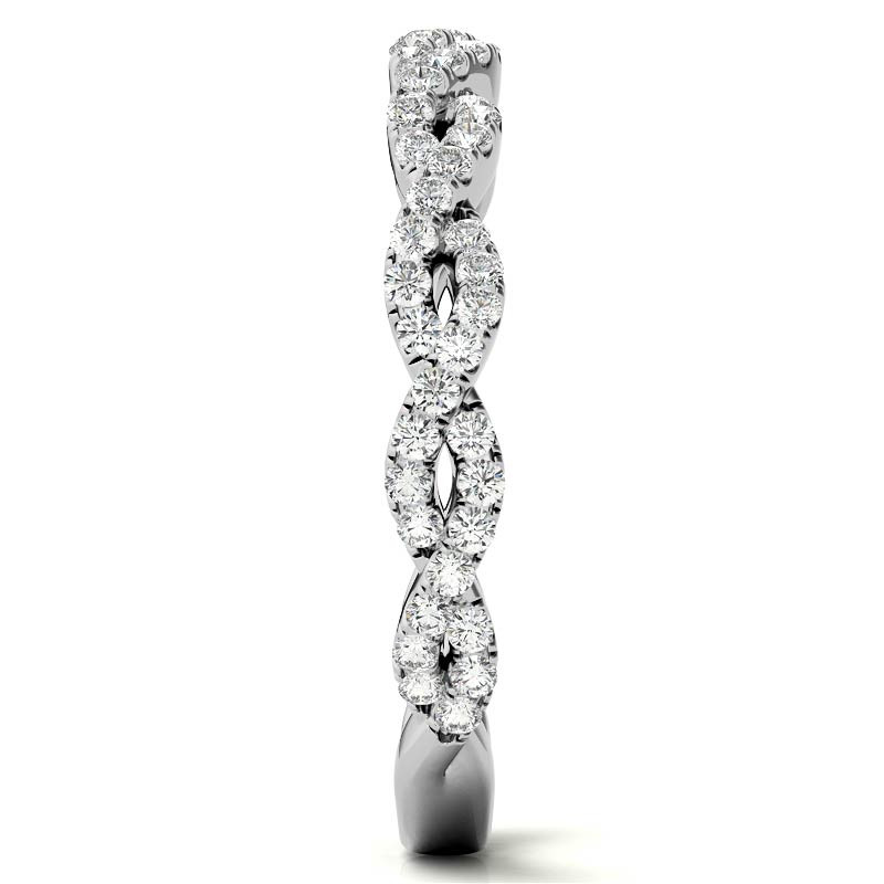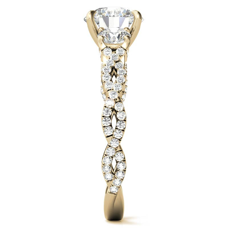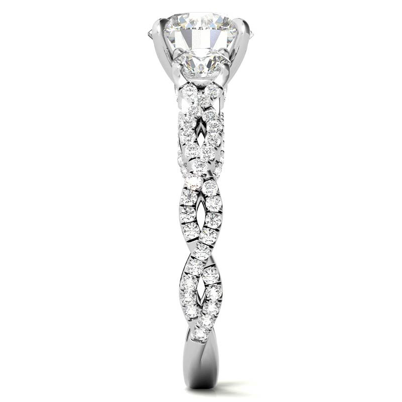 Adorning the infinity-inspired band and delicately adorning the bridge of the gallery are 0.92ct of melee round brilliant lab grown diamond accent stones, meticulously set to enhance the overall enchantment of the ring.