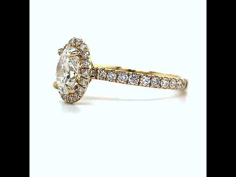 This captivating ring showcases a stunning oval cut lab grown diamond center stone, creating captivating depth and radiance. The ring is further adorned with 0.84ct - 0.96ct of colorless lab grown diamond side stones, adding an element of luxury and sparkle to the overall design.