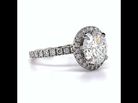 This exceptional lab grown diamond engagement ring features a halo design encircling the center stone, accompanied by a hidden collar that embraces the base of the center stone.