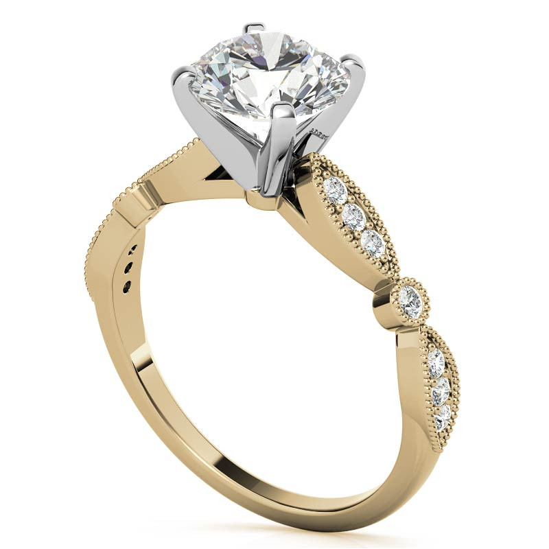 #enr712 Scalloped Design Lab Grown Diamond Engagement Ring with Milgrain