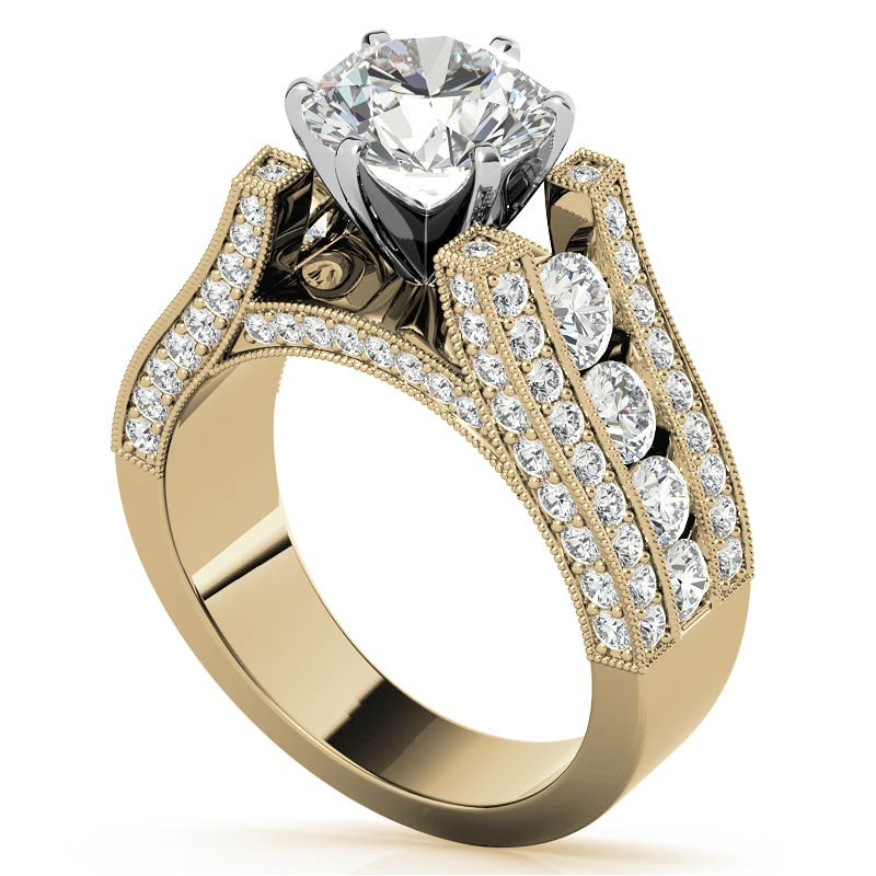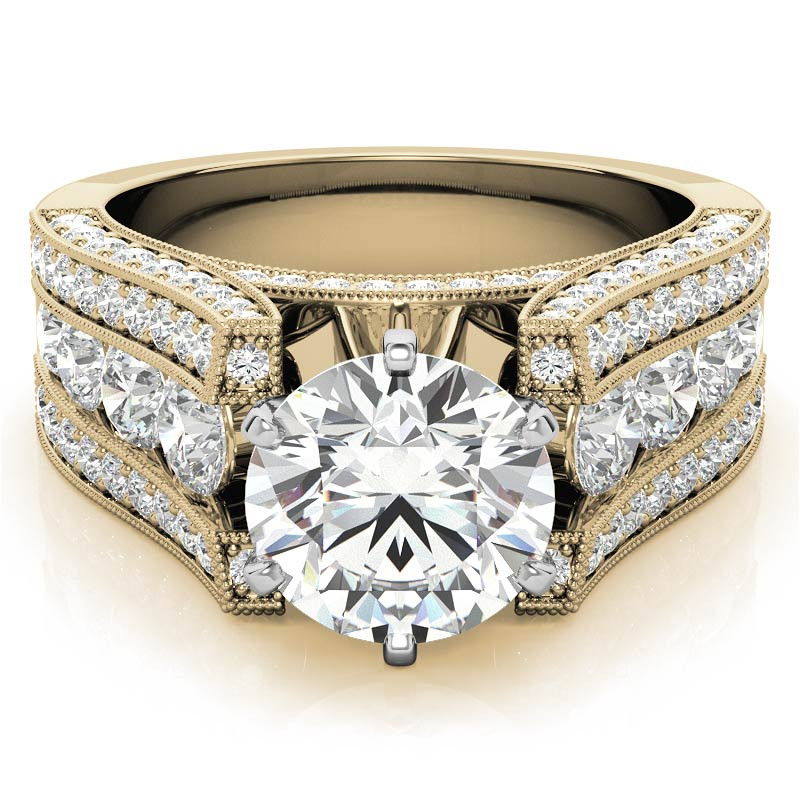 Featuring Side Stones, Antique, Cathedral, Channel, Wide Band, Split Shank and Milgrain from our Engagement Rings collection. Model #enr740 is available in 61 brilliant center stone options, 2 fine sidestone options, and your choice of 6 eco-friendly precious metals.