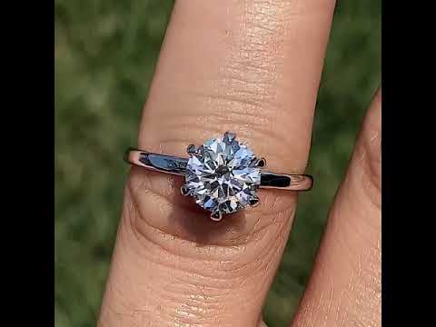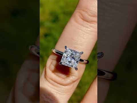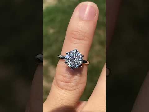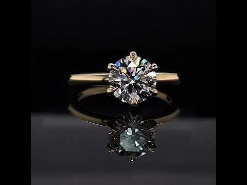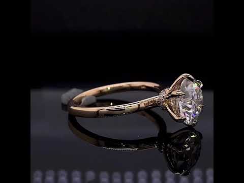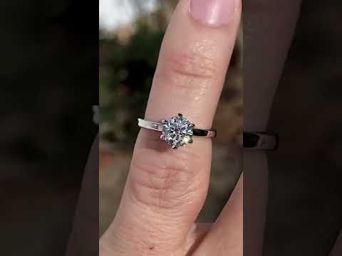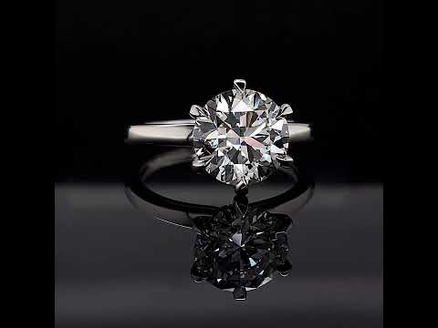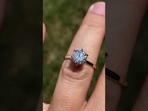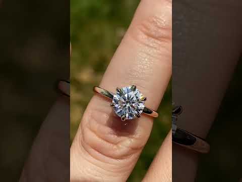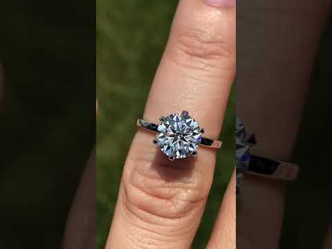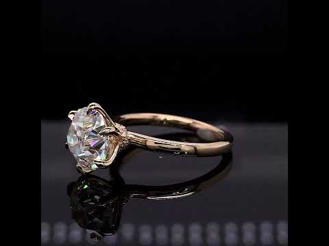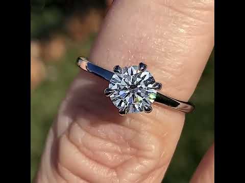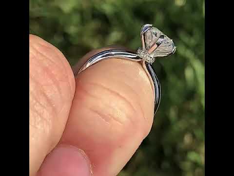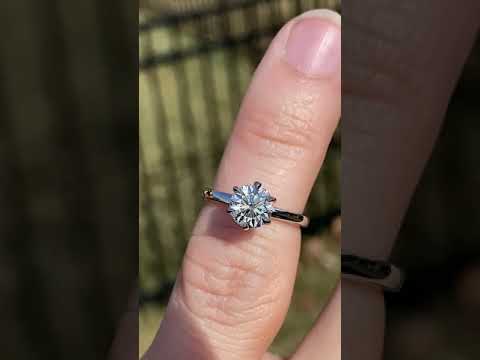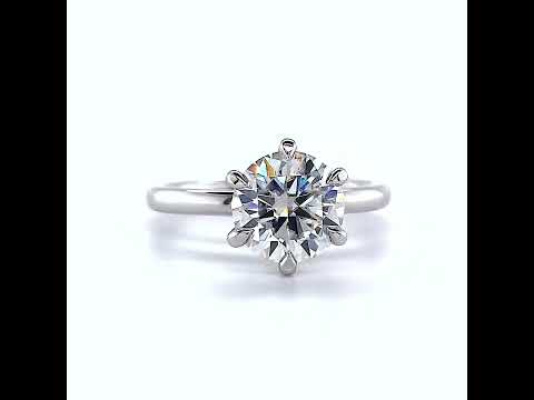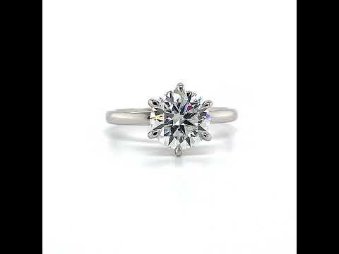 Introducing an exquisite lab grown diamond engagement ring that embodies understated elegance with its petite solitaire design and sleek band. A hidden halo collar of 0.06ct colorless lab grown diamond gemstones delicately encircles the base of the six, claw-shaped prongs, accentuating the brilliance of the round brilliant lab grown diamond center stone.