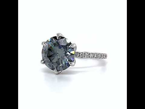 The ring is adorned with 0.56ct - 0.74ct of colorless lab grown diamond side stones, further enhancing its exquisite charm and radiance.