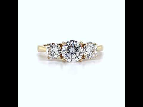 Discover this exquisite lab grown diamond engagement ring featuring a distinctive design, adorned with trellis set accent stones at the top of the cathedral setting with the remainder of the band left plain.