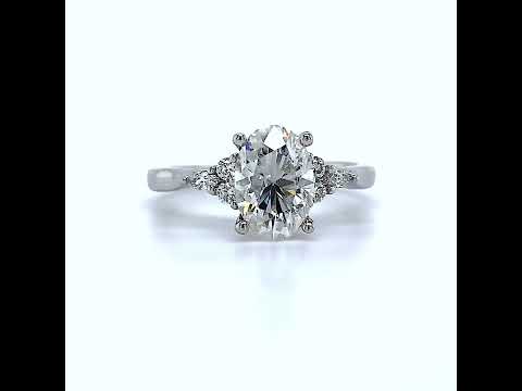 This captivating ring highlights an oval cut lab grown diamond center stone and 0.17ct of round and marquise cut colorless lab grown diamond side stones.