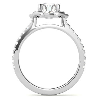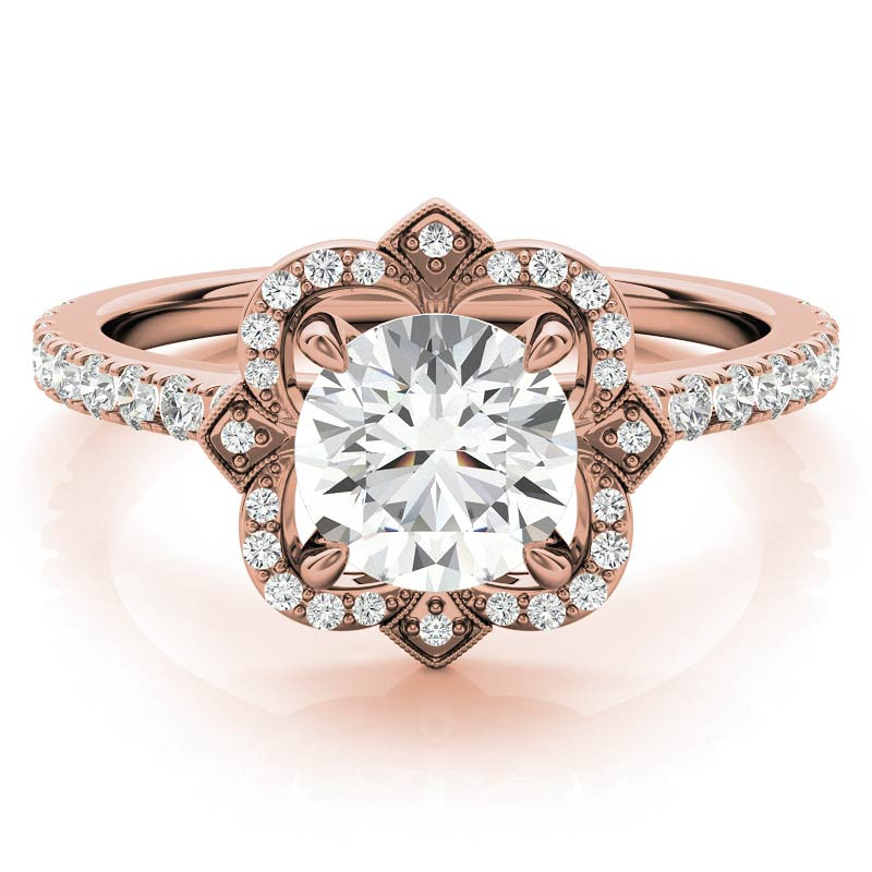 #enr814 Round Scalloped Halo Lab Grown Diamond Engagement Ring with Milgrain Accents