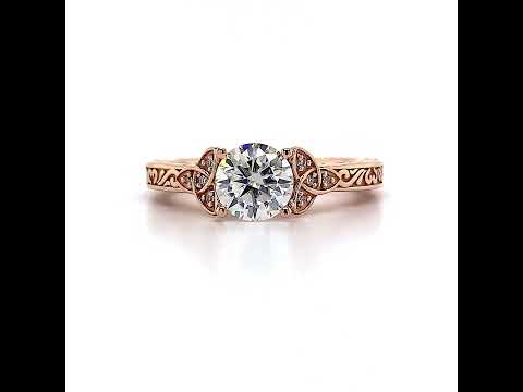 This beautiful lab grown diamond engagement ring features a cathedral setting with a round cut colorless lab grown diamond center stone, tulip prongs, and has 0.15ct of 1.8mm accent lab grown diamond stones. Available in your choice of 14k gold, 18k gold or platinum. The band width is approximately 2.0mm at the base of the ring and slightly tapers smaller toward the center stone.