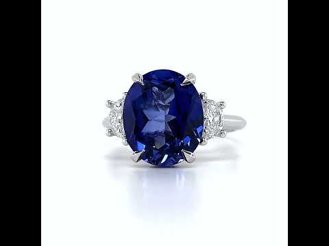 The center stone takes center stage, held securely in place by four sets of claw-shaped double prongs. This meticulous setting not only ensures the protection of the stone but also draws the eye towards its captivating beauty. The five stones are elegantly basket-set, allowing for an open view from the gallery, allowing every facet of their brilliance to shine through.