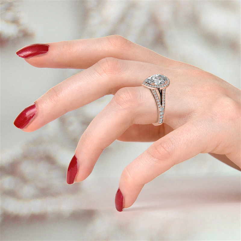 Featuring Side Stones, Halo, Cathedral, Channel and Split Shank from our Engagement Rings collection. Model #enr838-pear is available in 8 brilliant center stone options, 2 fine sidestone options, and your choice of 6 eco-friendly precious metals.