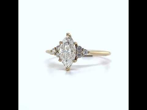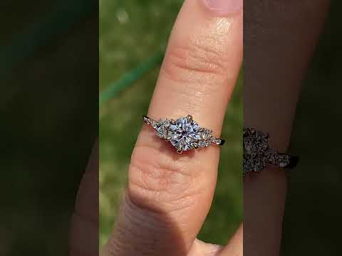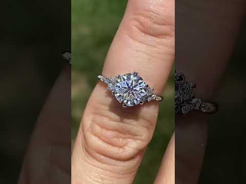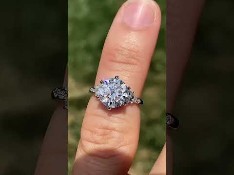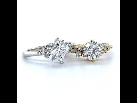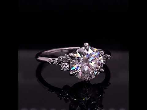 Experience the allure of this stunning engagement ring that showcases a captivating cluster design. Crafted with precision, this masterpiece features a round brilliant lab grown diamond center stone that is securely held in place with six exquisite claw-shaped prongs.