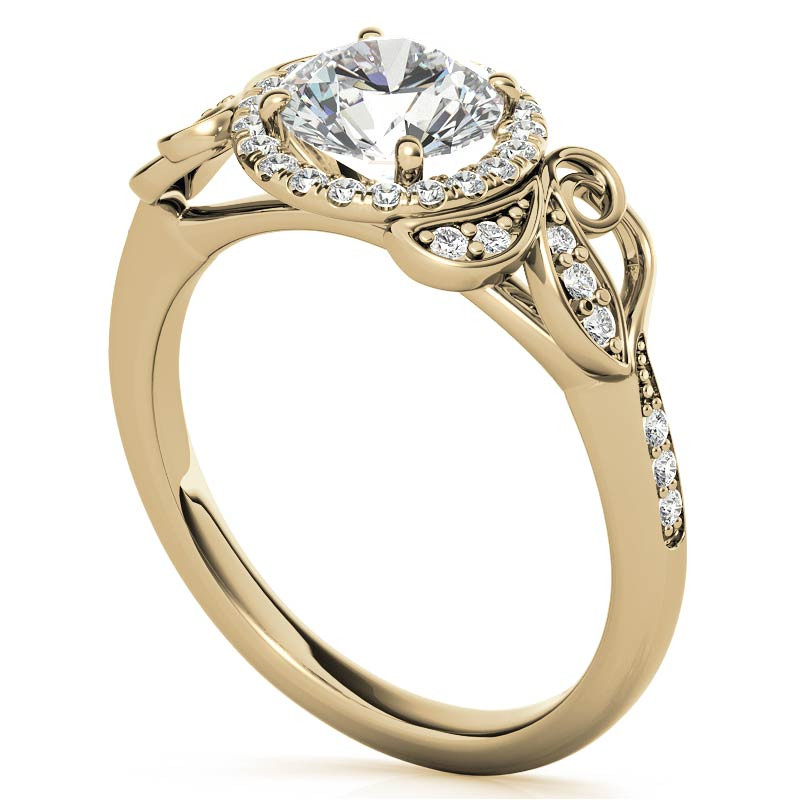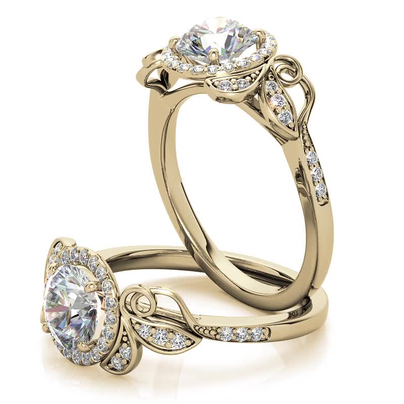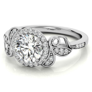 #enr874 Natured Inspired Round Brilliant Lab Grown Diamond Cathedral Engagement Ring