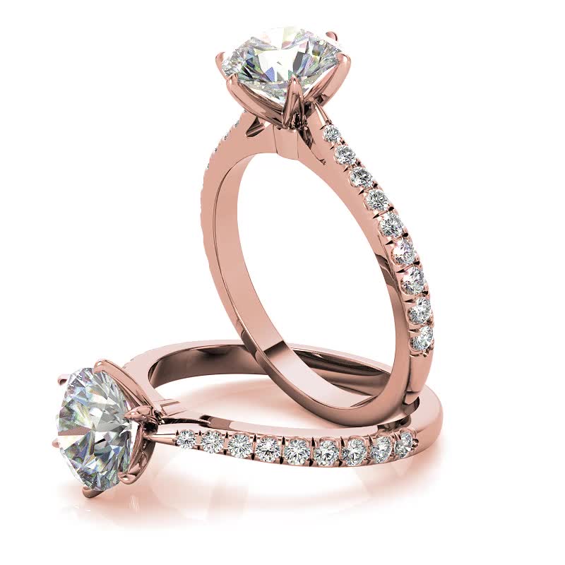 #enr887 Round 6-prong Graduated Lab Grown Diamond Engagement Ring