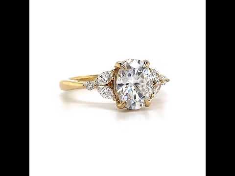 Experience the enchantment of the ring's design, as four marquise cut and two round brilliant diamond accent stones gracefully flank the center stone. The combined carat weight of these accent stones ranges between 0.19ct to 0.35ct, adding a touch of brilliance and enhancing the overall radiance of the ring.