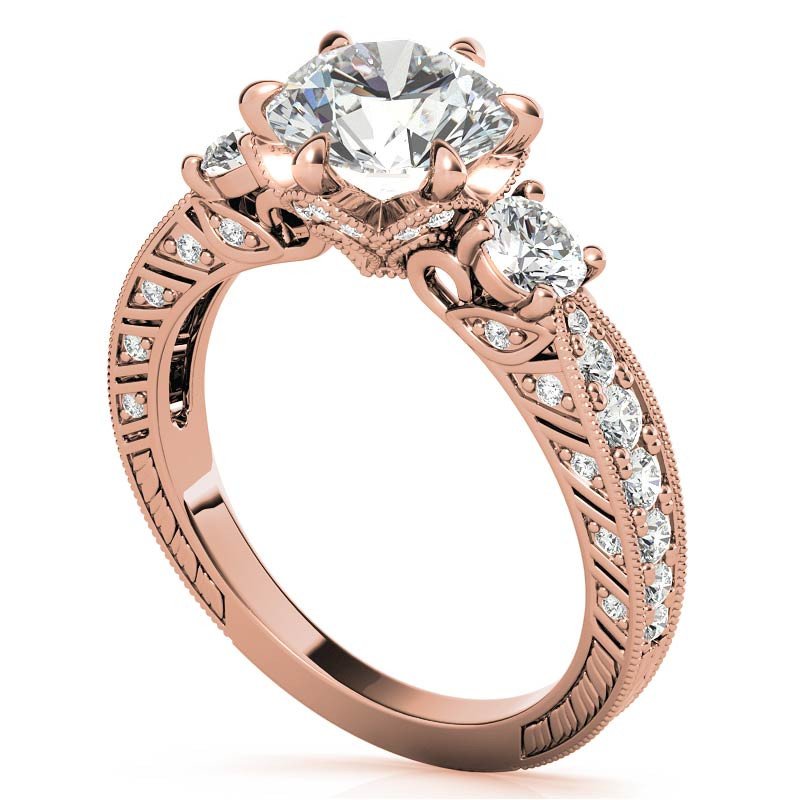 #enr918 Antique Inspired Round 3-Stone Lab Grown Diamond Engagement Ring