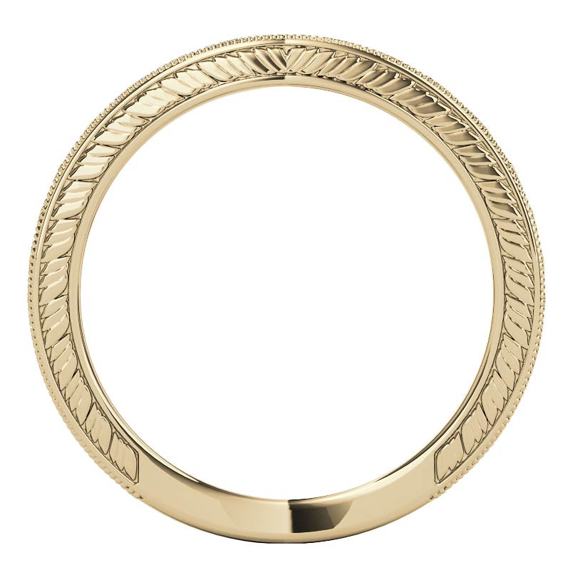 Delicately set within the bands are round brilliant lab grown diamond accent stones (0.35ct), meticulously placed on the tops and sides. The addition of delicate milgrain detailing further enhances the antique motif, adding an exquisite level of intricacy.