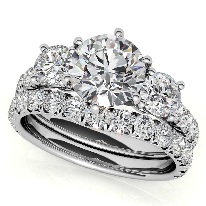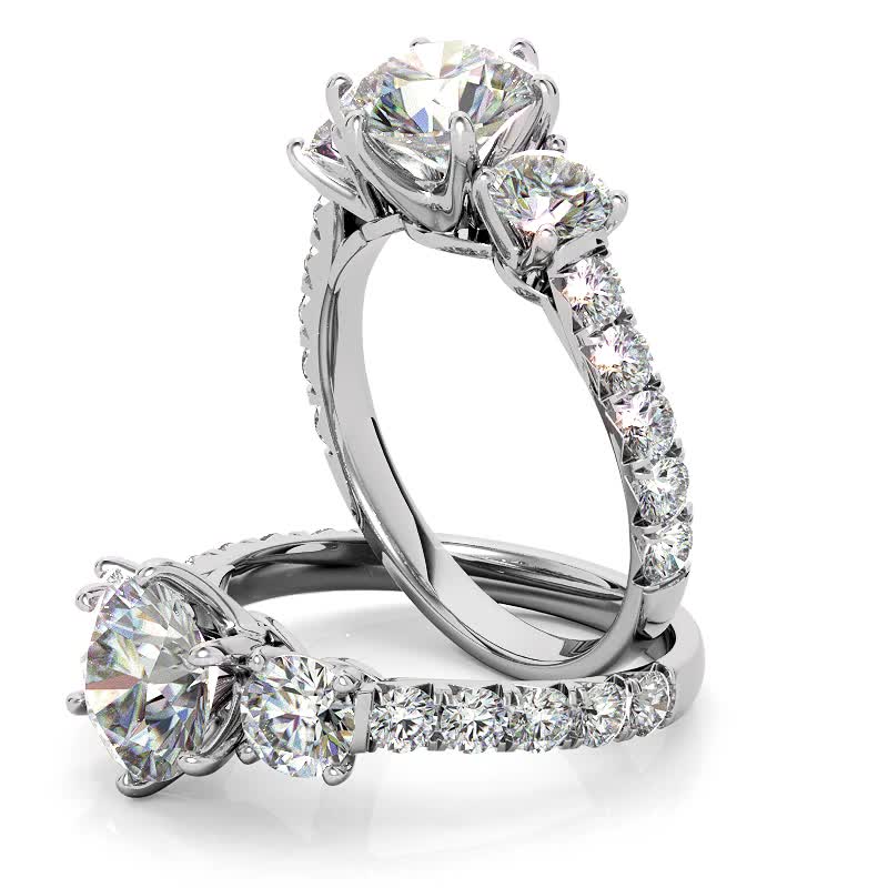 #enr926 Round Brilliant Lab Grown Diamond 3-Stone 6 Prong Crown Engagement Ring