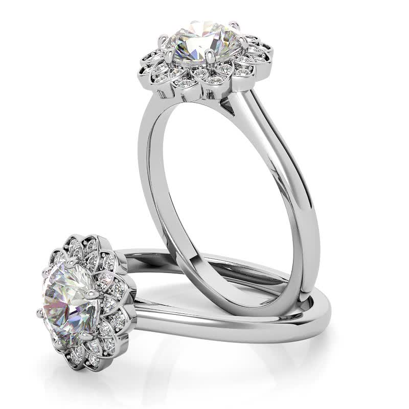 #enr935 Round Brilliant Lab Grown Diamond Floral Style Halo Engagement Ring
