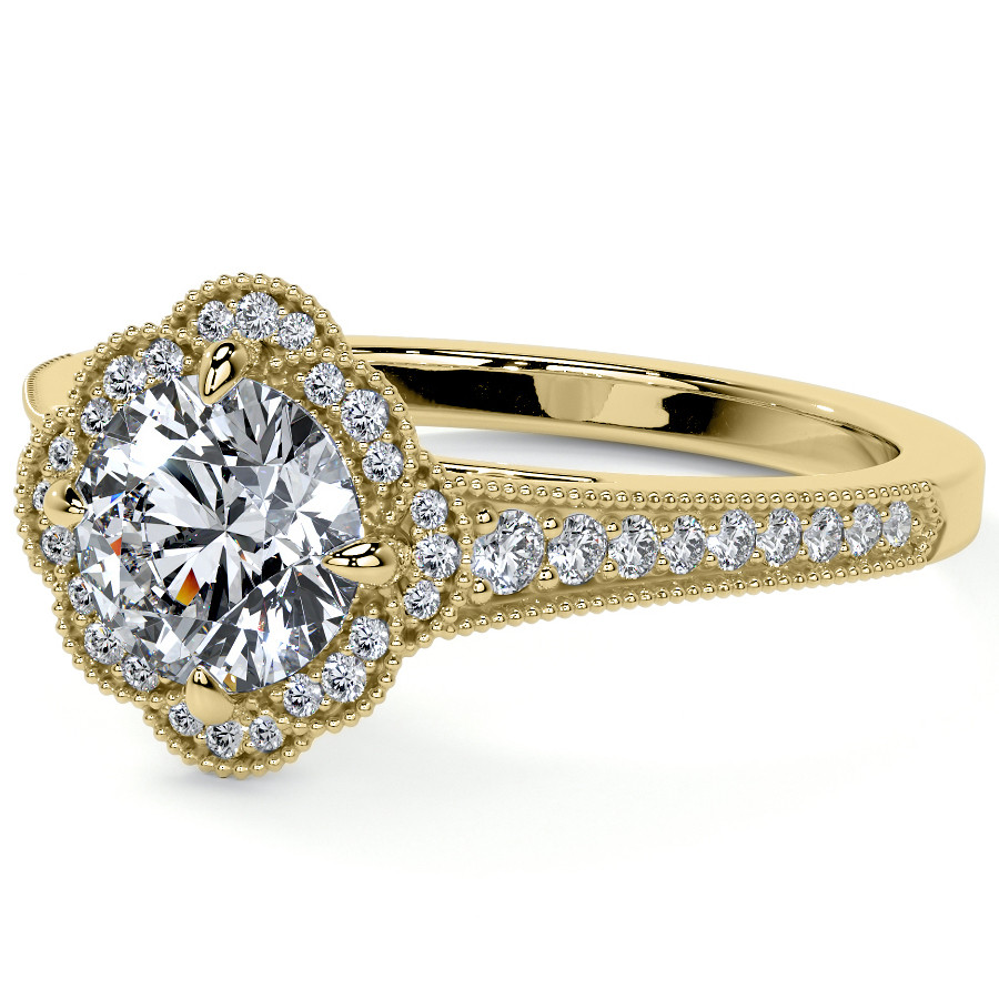 #enr960 Round Antique Style Halo Lab Grown Diamond Cathedral Engagement Ring