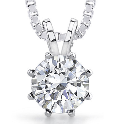This beautiful lab grown diamond pendant features an Octet (8-prong) design, set with a round brilliant cut lab grown diamond gemstone.
