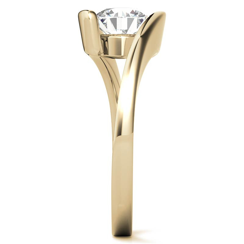This beautiful modern style solitaire ring features a bypass design, a round brilliant lab grown diamond center stone, and is set in 14k gold, 18k gold or platinum.