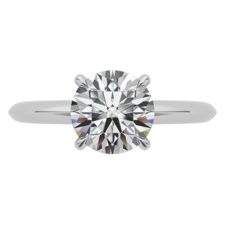 This beautiful lab grown diamond solitaire ring features a beautiful and delicate design with a knife-edge band like our standard sol238a but with a 4-prong head instead of a 6-prong head. Available in 14k white gold, 14k two-tone gold (14k white gold head, 14k yellow gold band) or platinum, with your choice of a 3/4ct to 3ct center stone. The band measures approximately 2.5mm at the top and 2mm at the bottom.