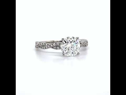 The beautiful solitaire features a unique antique floral design, a round brilliant lab grown diamond center stone, and is available in 14k gold, 18k gold or platinum.