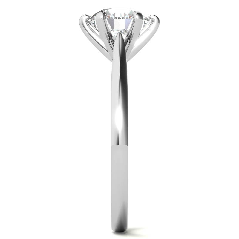 This solitaire ring features a cathedral design on a petite band leading to the 6-prong set round brilliant lab grown diamond center stone. The band width is about 2.2mm in the middle of the band and tapering down to 1.8mm wide at the bottom.