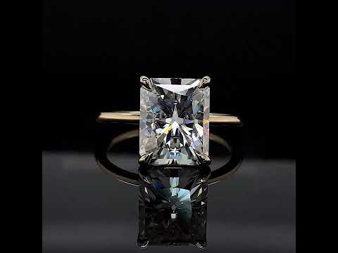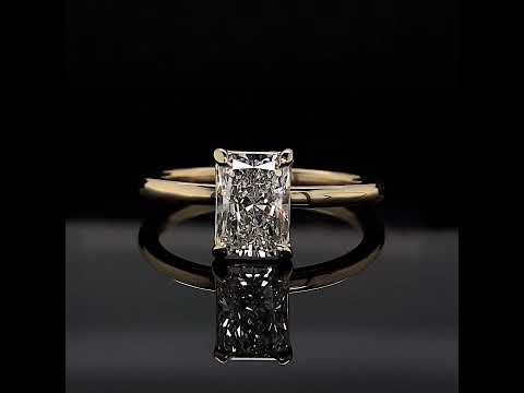 #sol455-em Emerald / Radiant Lab Grown Diamond Petite Solitaire Ring