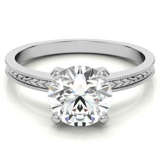 #sol475 Etched Lab Grown Diamond Solitaire Ring with Milgrain