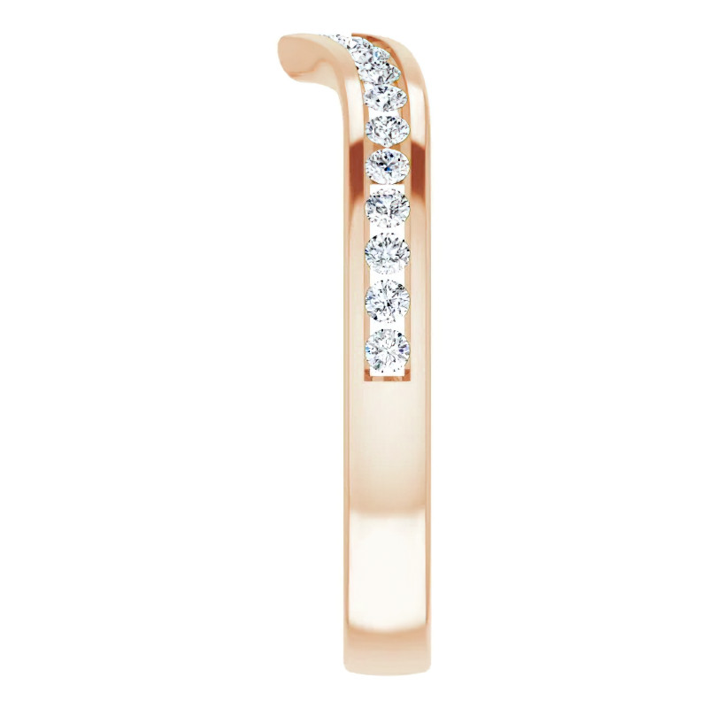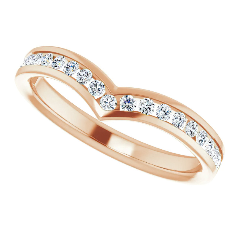 This stackable band features a v-shape with 0.32cts of channel set round brilliant lab grown diamond sides stones and is set in 14k gold.