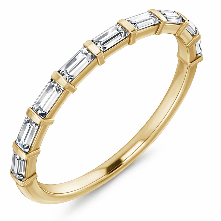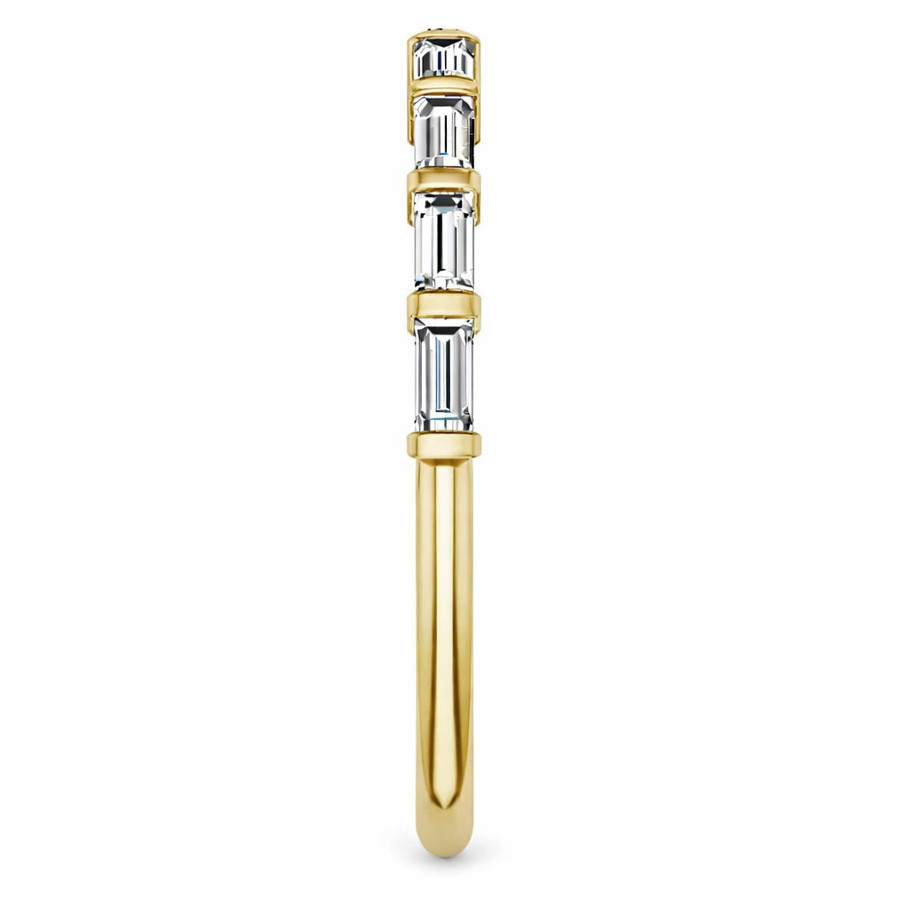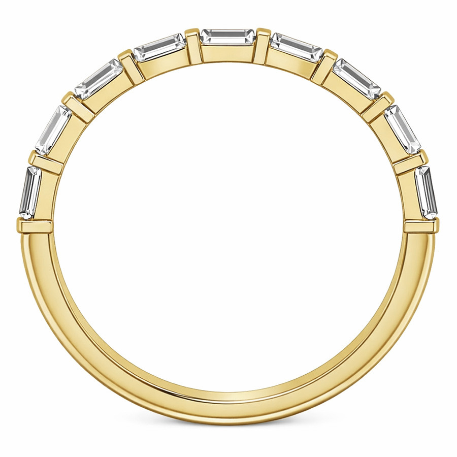This beautiful stackable band features 0.54tcw of straight baguette lab grown diamond side stones, set in 14k gold.